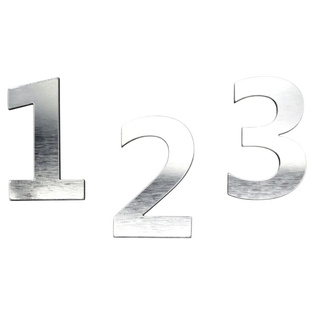 • Husnumret er udskåret i skiltelaminat med overflade i let børstet stål look som ligner stål men er ikke metal