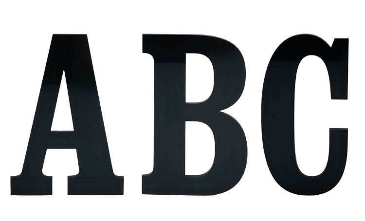 - Husbogstaverne er udskåret i meget blank sort akryl