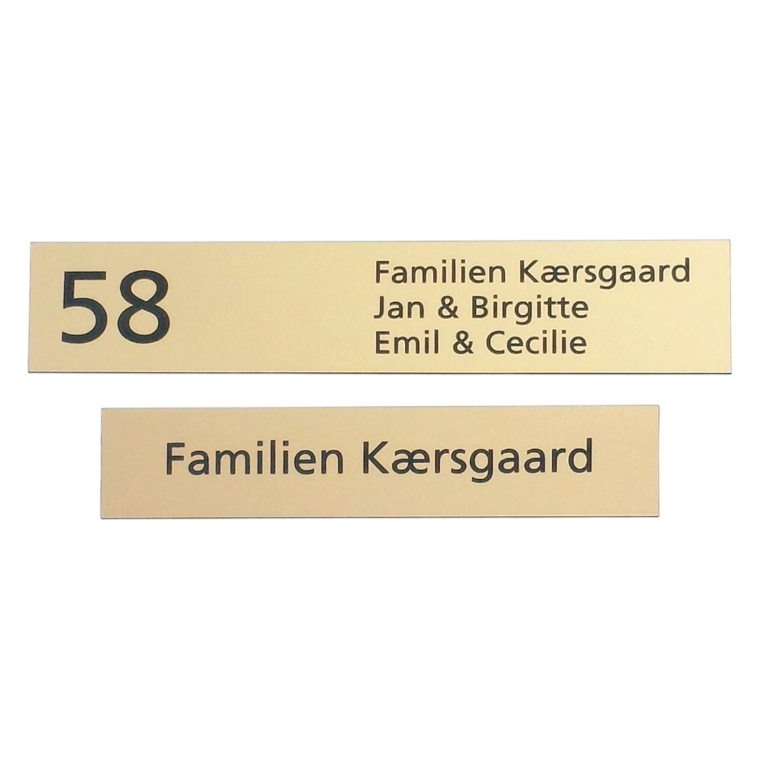 Elegant skilt i messing look med husnummer - et stilfuldt valg til dig, der ønsker et klassisk og eksklusivt udtryk.