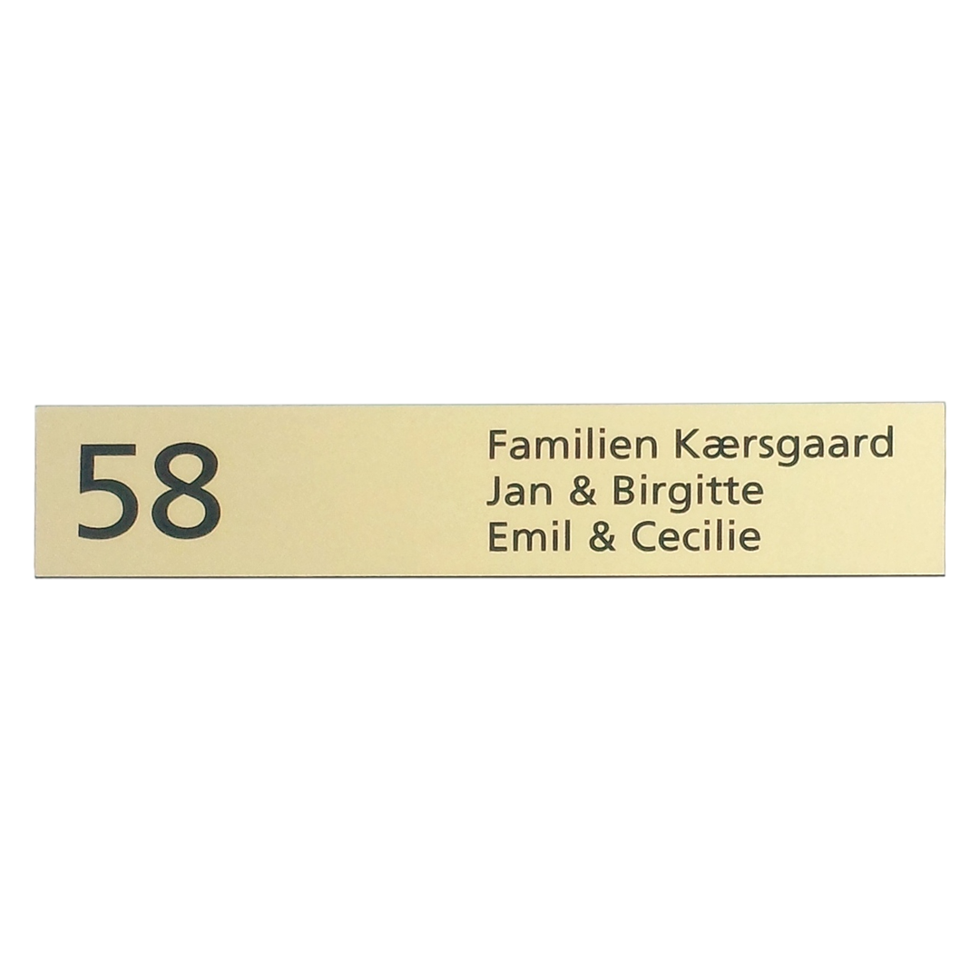 Elegant skilt i messing look med husnummer
