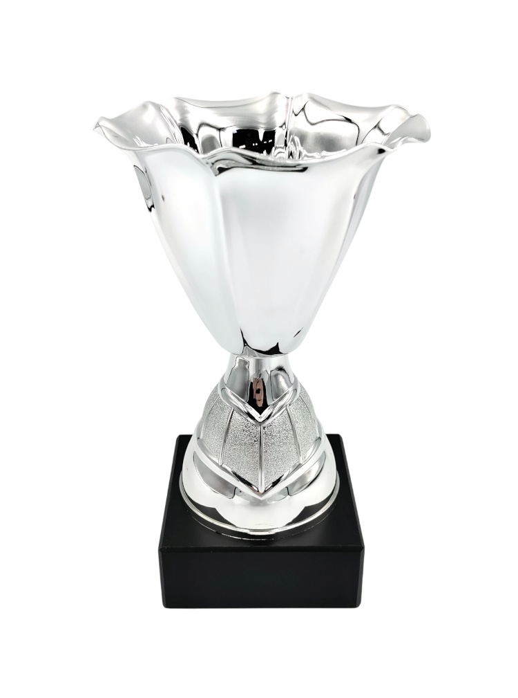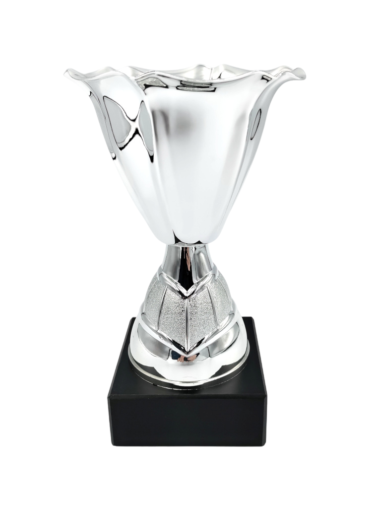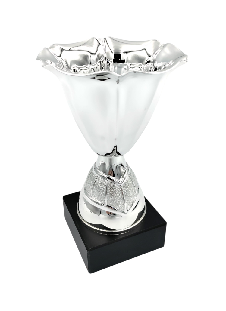 Den flotte sølvpokal er 17,5 cm høj, med en tulipanskål på 10 cm.